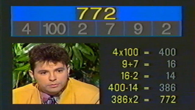 Premièrement : autant on peut citer pas mal de jeux qui recourent aux anagrammes (ou qui sont basés sur les lettres de façon générale) ; autant ceux qui sont basés sur le calcul et les mathématiques ne sont vraiment pas légion. Le plus souvent, le mieux qu’on puisse espérer de la part d’un jeu TV pour qu’il s’intéresse aux mathématiques, c’est une question par-ci par-là, comme n’importe quelle question de culture générale lambda.