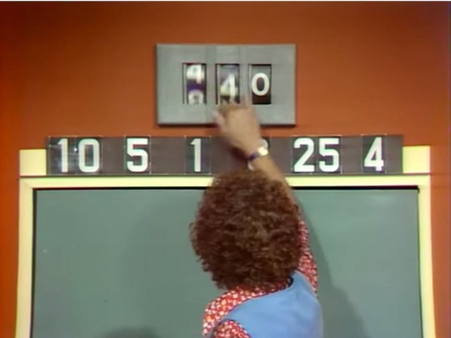Dans ce mini-jeu, les candidats ont à leur disposition six nombres donnés tirés au sort (parmi les nombres entre 1 et 10, 25, 50, 75 et 100) et la possibilité de les additionner/soustraire/multiplier/diviser pour parvenir à obtenir un nombre à trois chiffres donné. Il n’est pas obligatoire d’utiliser les six nombres ; toutefois, chaque nombre de départ ne peut être utilisé qu’une seule fois.