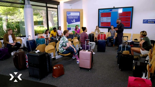 Typiquement, la structure d’un épisode de Destination X, c’est le bus qui circule à travers l’Europe, quelques épreuves pour ponctuer le trajet et remporter des indices sur la destination du jour, et l’élimination du candidat le plus éloigné à la fin.