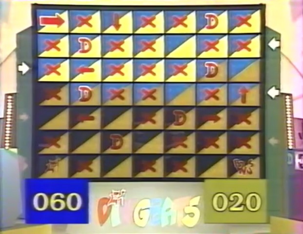 Cela dit, si je traite ce jeu en plus de Catchphrase, c’est qu’il exploite son principe de base de façon un peu différente. En effet, dans Catchphrase, la mécanique est vraiment centrée sur les catchphrases en question ; mais l’enrobage n’a rien de spécialement particulier et reste assez classique. Alors que Dingbats a un peu plus à proposer à ce sujet… du moins dans sa première partie.