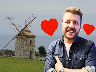 Une photo d'un moulin, avec en premier plan... euh... hé mais attendez, c'est Bruno Guillon ça !!!