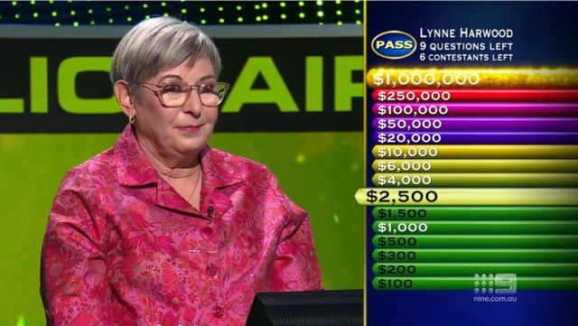 À l’exception du candidat qui aura gagné le Fastest Finger First, chaque candidat ne dispose que du « Pass », joker à usage unique, qui lui permet de passer la question en cours à son voisin de gauche (et qui, en outre, est activé automatiquement si le candidat n’a pas répondu à la question à la fin du chronomètre), et qui fera prendre la main à ce dernier. Ce qui le fait donc sortir temporairement de la partie… voire même définitivement, si la main ne revient jamais à lui après ça. Ce qui fait qu’il ne vaut pas toujours le coup d’être utilisé, surtout si l’on s’approche de la fin de la partie. Mais bon, ça reste le seul moyen d’espérer survivre et d’espérer remporter quelque chose au final, étant donné qu’il est impossible pour les candidats de décider d’abandonner en cours de route.