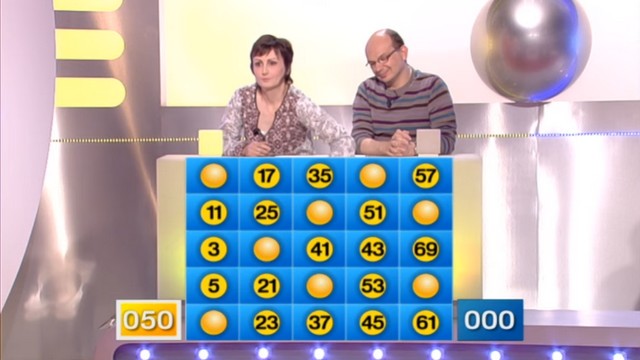 Le binôme qui trouve le mot doit ensuite piocher des boules dans une urne : chacun de ses membres pioche un numéro, qui figure sur une grille numérotée, et leur but est, au fur et à mesure, d’avoir une ligne complète de numéros (horizontalement, verticalement ou en diagonale), pour obtenir 100 points supplémentaires, et réinitialiser les grilles. En revanche, il doit faire attention à ne pas piocher l’une des trois boules noires, qui fera passer la main à l’autre binôme.