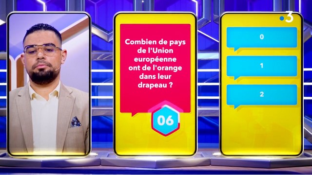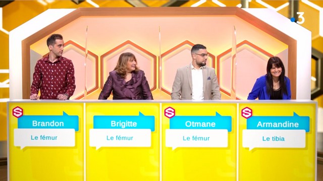 Bon, sinon, histoire d’en parler rapidement et de terminer cette partie sur une note relativement positive : lorsque les candidats ont le choix entre les spécialistes, on a généralement une indication visuelle du thème de la question, plus ou moins légère, sur leur aperçu. Par exemple, des jumeaux sur une question qui va porter sur des jumeaux célèbres ; une spécialiste qui porte un tissu madras pour une question sur l’outremer ; un drapeau européen sur le mur pour un spécialiste de la géographie européenne, etc.
