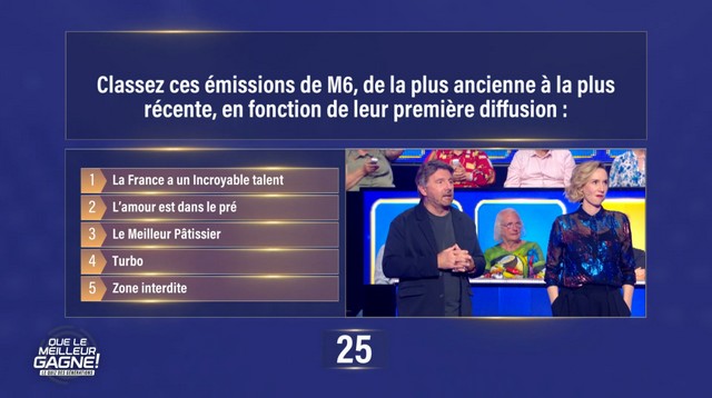 En effet, dans un premier temps, M6 avait relancé le format en prime-time, pour une diffusion événementielle, le 16 octobre 2024. L’animation avait alors été confiée à Vincent Dedienne ; et c’était une spéciale people (grrrrr…). Mais contrairement à QLMG, en termes d’audiences, on peut parler de succès : avec un peu moins de 3 millions de téléspectateurs, pour 14% de parts de marché. Cependant, Vincent Dedienne a assuré qu’il ne s’agirait que d’un one-shot ; et que même s’il avait beaucoup aimé animer ce prime (on y reviendra), il ne se projetait pas pour une animation régulière.