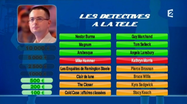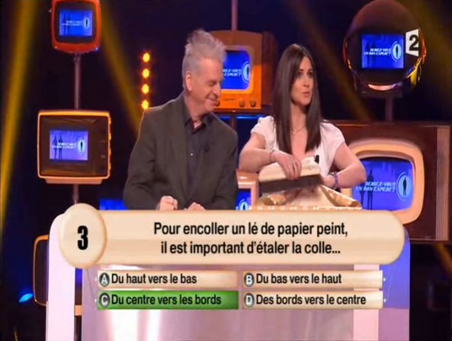 Et, bon, je reconnais que d’un certain point de vue, le fait de ne pas switcher les thèmes permet de vraiment spécialiser les candidats, et de coller au thème global de l’émission (après tout, le titre, c’est Seriez-vous un bon expert ?, sous-entendu « Avec votre champ d’expertise »)… mais à côté de ça, on compare quand même un peu les choux et les carottes, puisque le domaine d' »expertise » des candidats n’est pas du tout le même (et que lorsque la question de sélection a disparu, les candidats n’étaient pas forcément prédisposés à être des experts dans les domaines qu’on leur a attribués…).