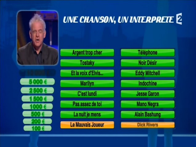En outre, à l’instar de la manche 2 de Trouvez l’intrus (elle aussi très banale, mais comme elle est intégrée dans un jeu qui est l’incarnation même de la banalité…), je ne vois pas ce qui justifie spécialement que les questions valent plus de points au fur et à mesure. Une augmentation de la difficulté de celles-ci ? … mouais, mais ça reste un peu subjectif, tout de même.