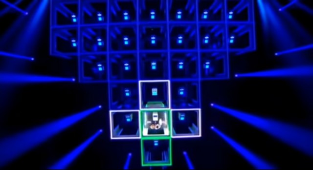 Devant eux, se trouve un « labyrinthe » composé de plusieurs rangées et de plusieurs cases. Chaque case est une salle contenant un pupitre à activer par les candidats, et est reliée aux cases adjacentes par une porte.