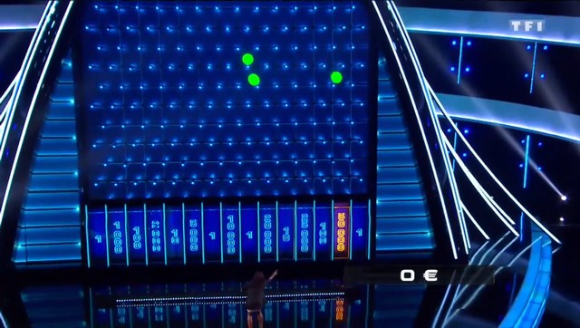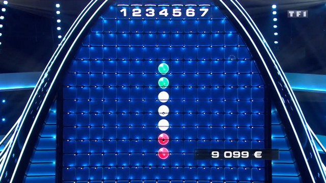 Ici, la planche de Galton servira à déterminer les gains (ou les pertes) potentiels des candidats, pour chaque question. Ainsi, la question est d’abord posée, puis la réponse vérifiée, et le gain (ou la perte) dévoilé par la case dans laquelle la balle atterrira. Sachant que chaque question à laquelle on a répondu juste fera gagner de l’argent, et qu’à l’inverse chaque mauvaise réponse en fera perdre.